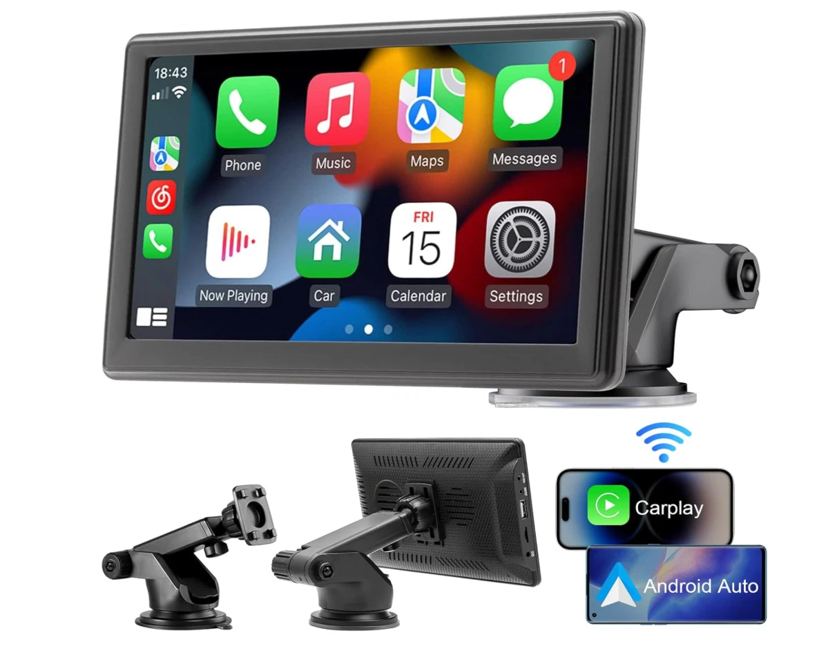 Головна » Категорії » Бездротовий автомобільний екран CarPlay / Портативний автомобільний відеоплеєр, сумісний з Apple CarPlay та Android Auto, 7-дюймовий сенсорний IPS-екран для автомобільної стереосистеми з GPS-навігаціє