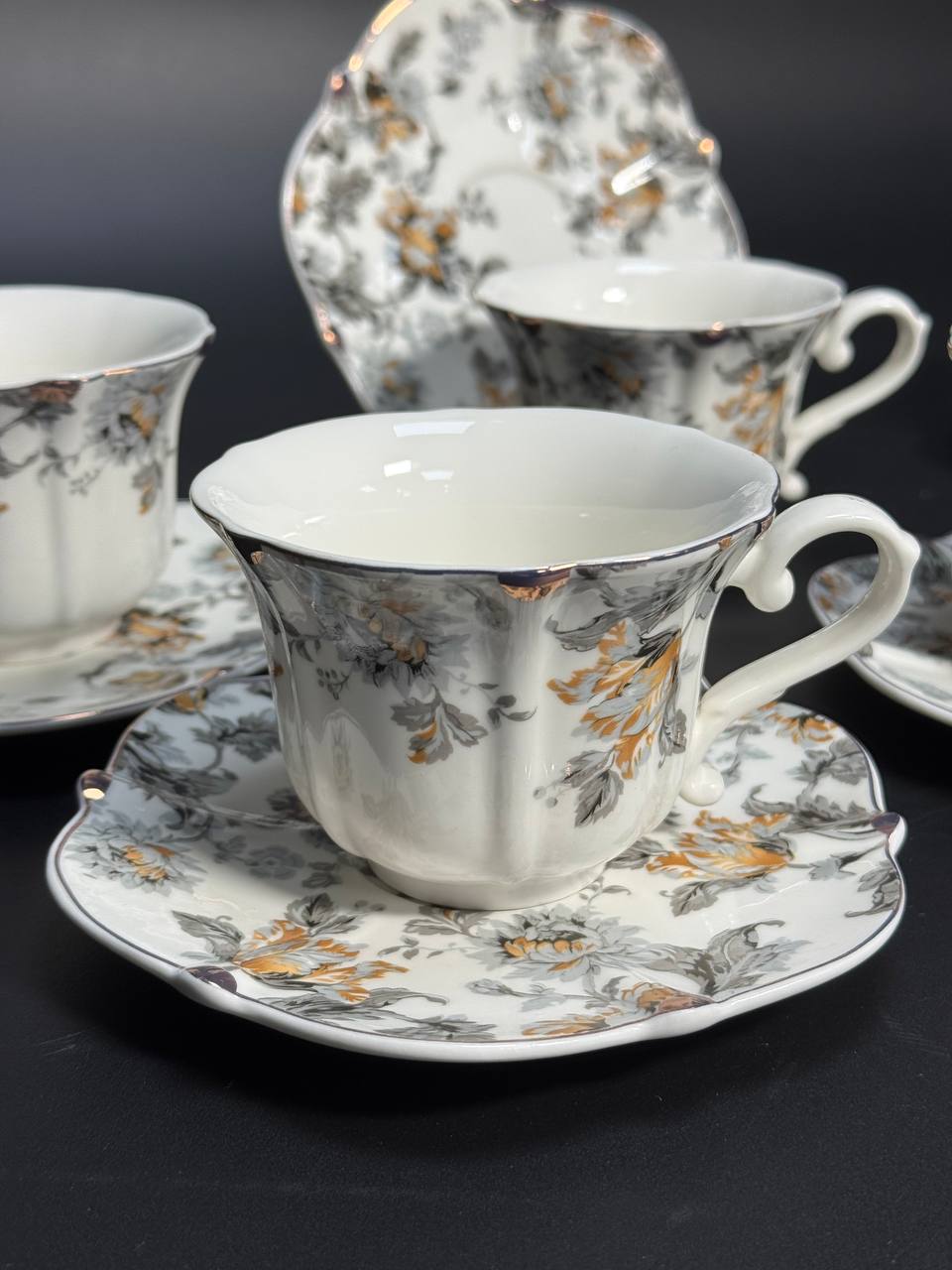 • Декор: витончений квітковий орнамент із золотистою окантовкою