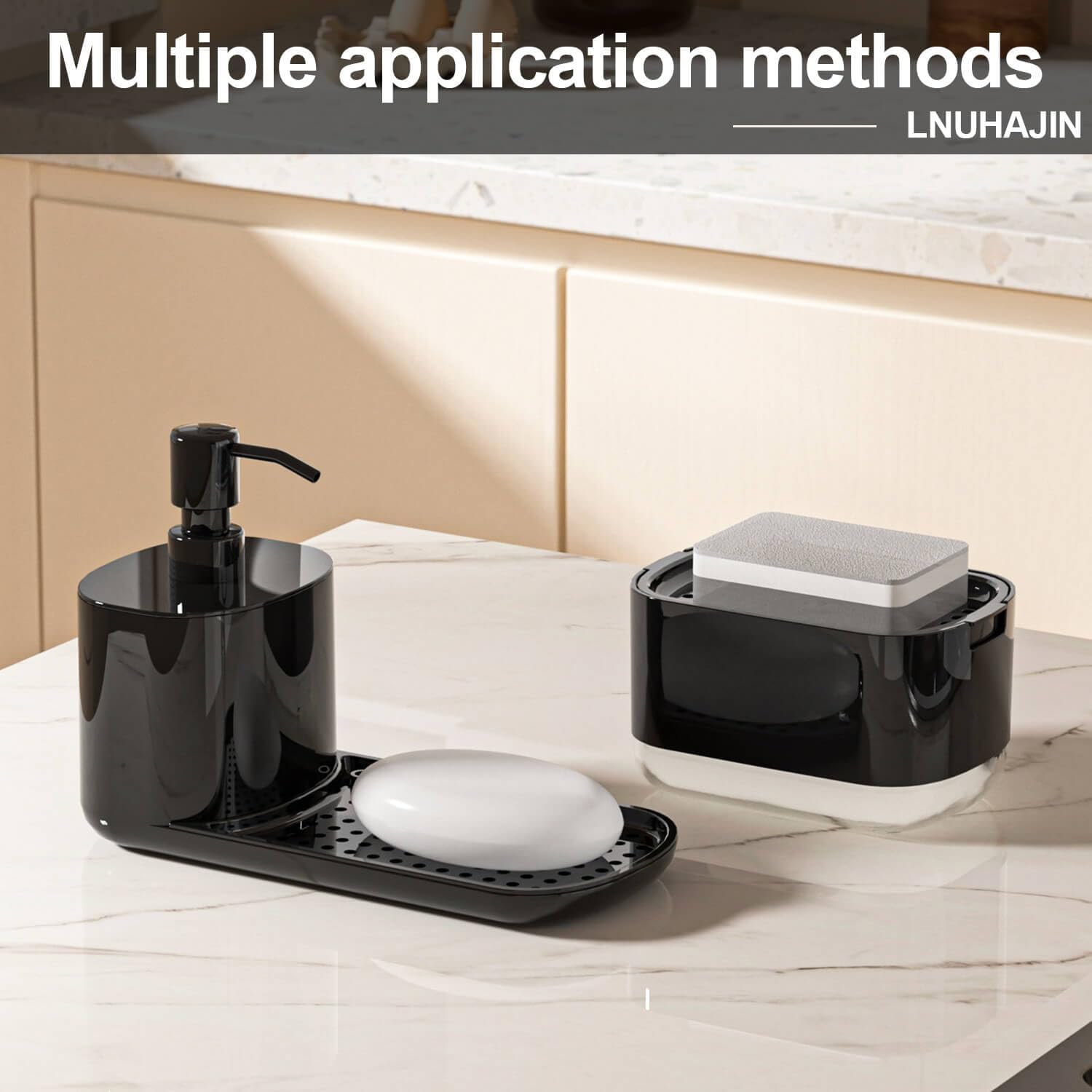 Цей набір дозаторів для рідкого мила для посуду та рук виготовлений з високоякісного АБС-пластику, безпечного, не містить BPA, екологічно чистого та корозійностійкого. Модний та зручний, він стане чудовим вибором для вашої кухні та подарунка.