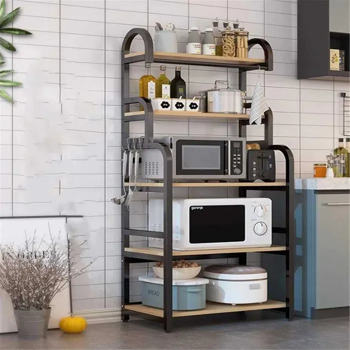 5 містких полиць – для мікрохвильової печі, тостеру, мультиварки, посуду та банок.