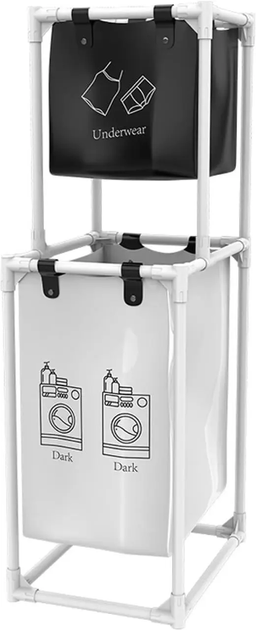 Двошарова конструкція – два окремі відсіки дозволяють розділяти брудний одяг за категоріями, наприклад, за кольором або типом тканини, що спрощує процес прання.
