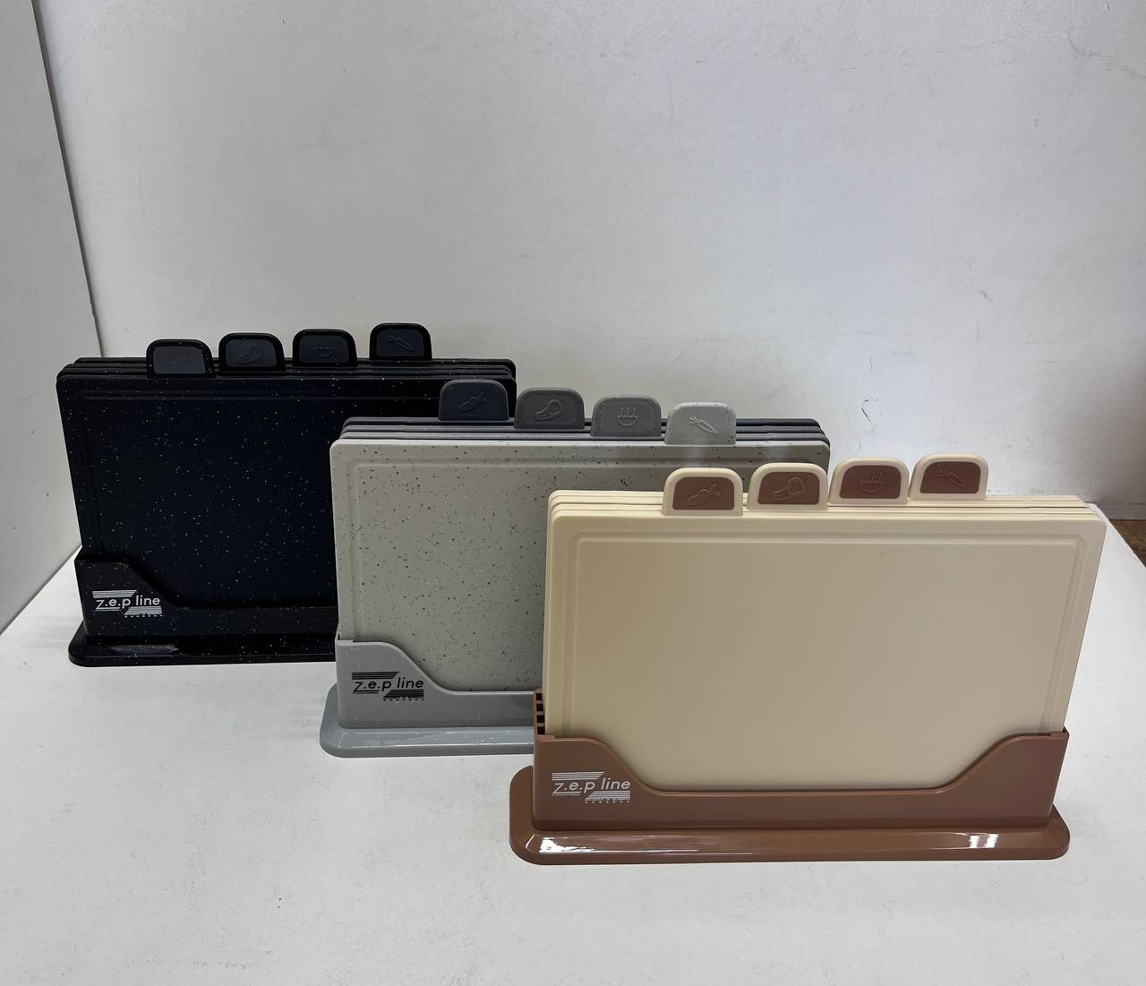 Головна » Категорії » Кухонний набір дощок Zepline ZP-00220 5 предметів із підставкою сірий