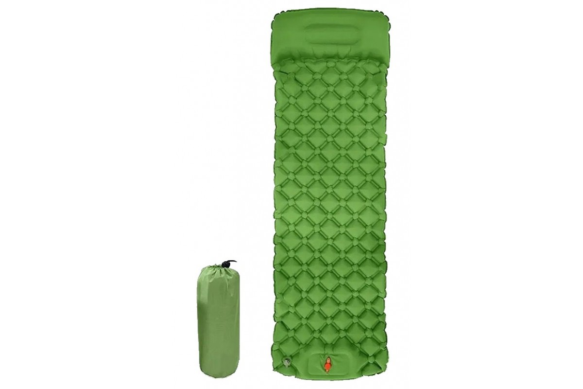 Килимок надувний туристичний з подушкою матрац 190x60x5см зелений з чохлом