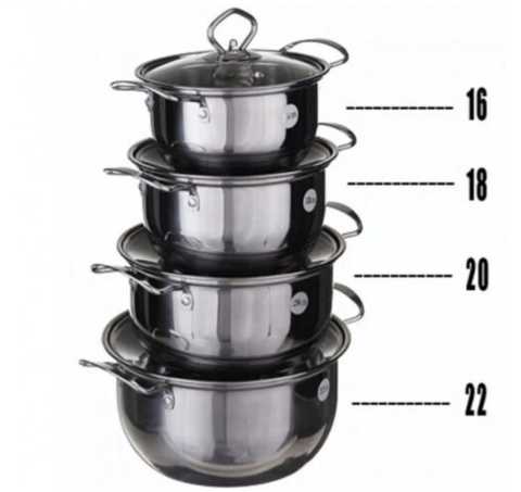 Набір каструль з кришками 4 шт Grandhoff GR-3558 Каструлі виготовлені з високоміцної нержавіючої сталі марки 18/10, корозії, що не піддається, і потьмянінню. Нержавіюча сталь відрізняється високою теплопровідністю та розподілом температури, завдяки чому відбувається швидке нагрівання та тривале утримання тепла. Каструлі можна використовувати на плитах будь-якого типу. Сучасний дизайн, привабливий вигляд та висока екологічність – переваги такого посуду. Набір стане гарним подарунком для будь-якої господині і чудово виглядатиме на будь-якій кухні. Особливості: Багатошарове дно Підходять для всіх видів плит Каструлі виготовлені з нержавіючої сталі Стильний сучасний дизайн