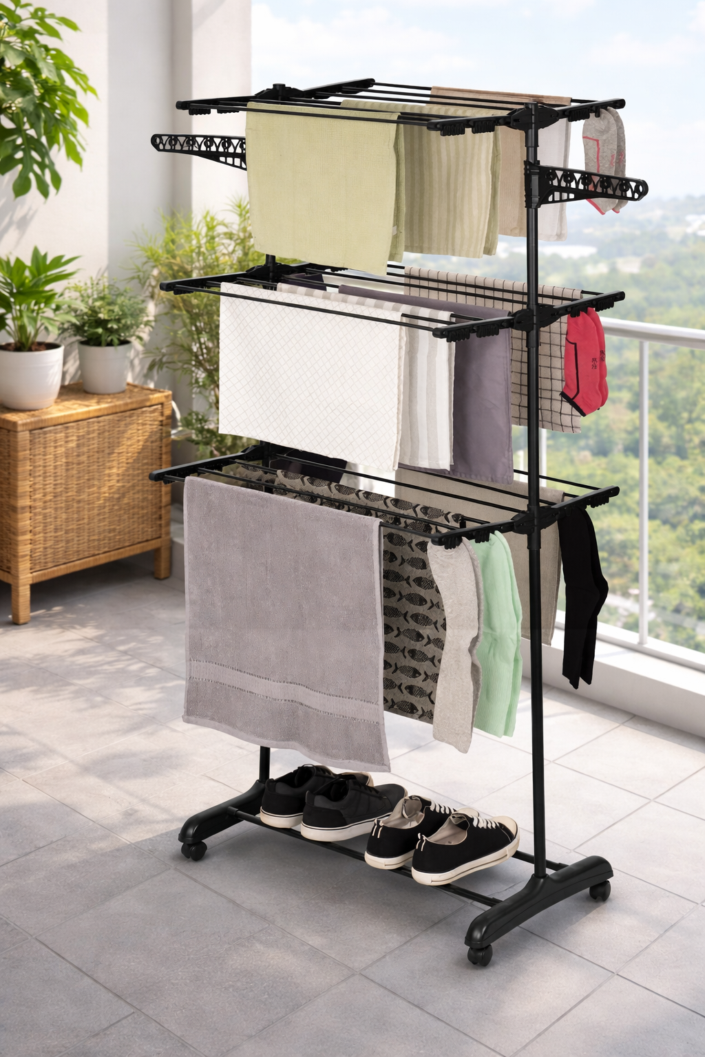 Одинарна сушарка для білизни 3-х рівнева на коліщатках
