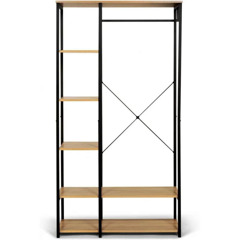 Повноцінна заміна громіздкій шафі для тих, хто цінує простір та естетику. Поєднання міцного металевого каркасу та текстурних полиць під дерево створює сучасний вигляд, що легко інтегрується в будь-який інтер’єр.
