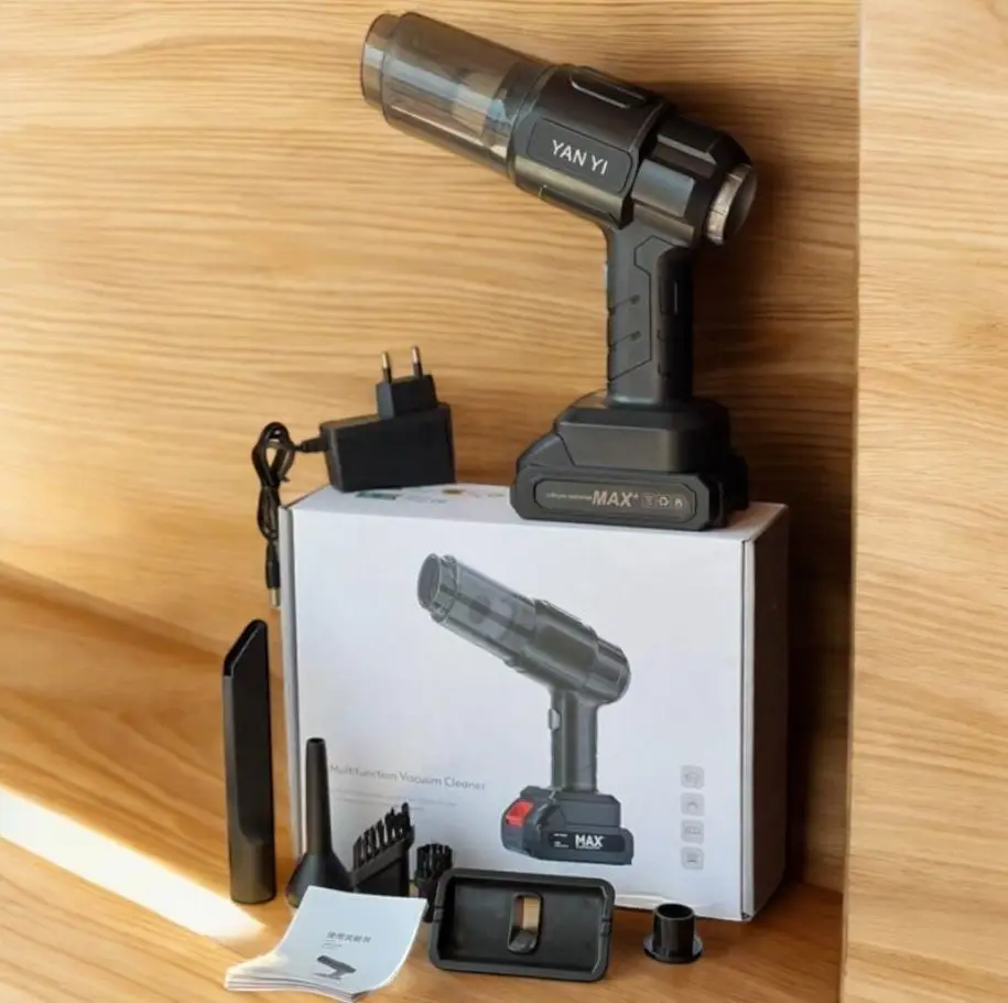Портативний акумуляторний пилосос для автомобіля із зручними насадками для важкодоступних місць. Ідеально підходить для прибирання салону, включаючи килими, оббивку та куточки. Легкий та простий у використанні, він забезпечує високу ефективність та комфорт при очищенні.