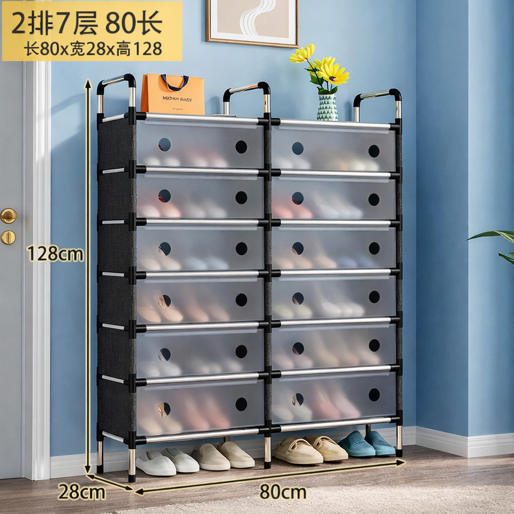 Дворядний 7-рівневий шафа-органайзер – ідеальне і стильне рішення для наведення порядку у вашій передній, вбиральні або коридорі. Він дозволяє компактно розмістити до 28 пар взуття (залежно від розміру) та захищає його від пилу.