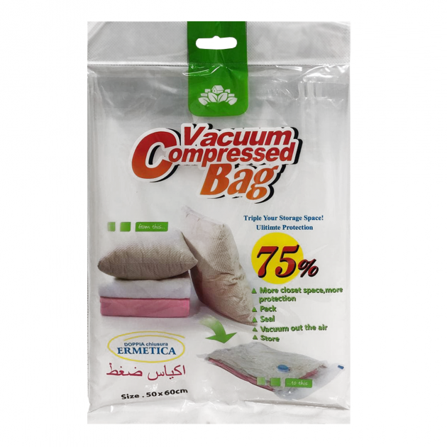 Використання просте, а розмір зменшується на 75-80%! Для порівняння подушка з висотою 20 см (розмір 40 x 60) зменшиться до 5 см! Не кажучи про “побічні ефекти” у вигляді захисту від пилу, вологи, запахів та комах.