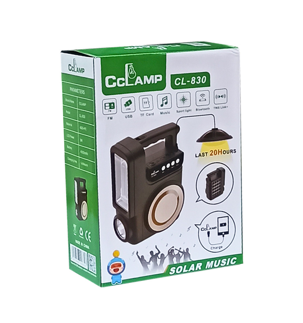 Bluetooth колонка-ліхтар із FM-радіо на сонячній батареї Solar CCLAMP CL-830;
